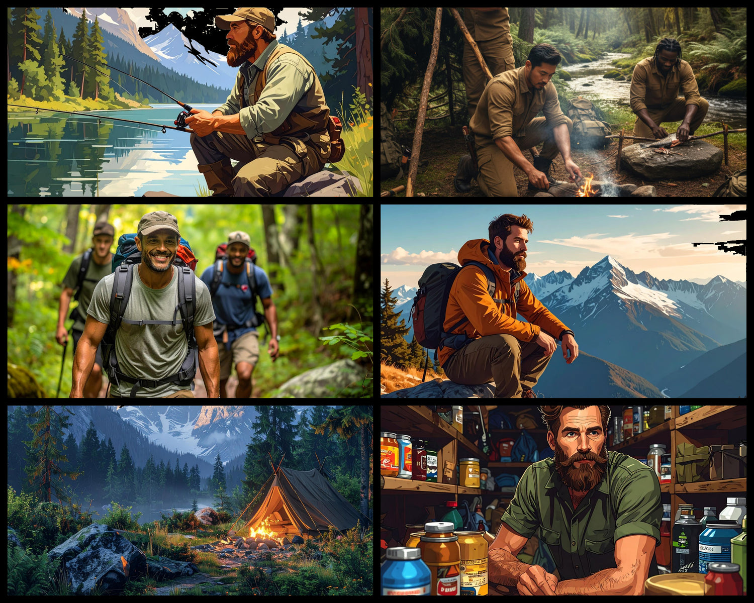 - Survivalist camping: Minimal gear, maximum skill.